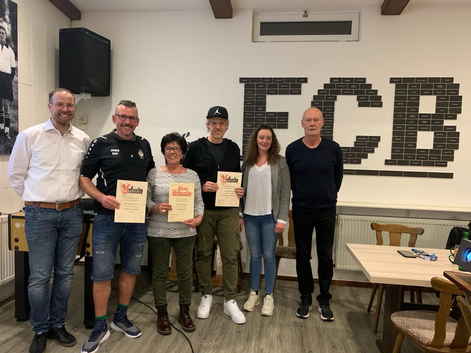 Danach folgte der Kassenbericht. Die finanzielle Lage des Vereins ist geordnet. Gert Zorn übernahm den Bericht der Kassenprüfer und schlug die Entlastung vor. Conny Szilvas berichtete über den Bereich Kinderturnen. Über den Spielbetrieb im Seniorenbereich berichtete Spielausschuss Werner Herrmann ehe Philipp Frank die Anwesenden über die Entwicklungen im Jugendfußballbereich informierte. Zum Abschluss der Berichte richtete Petra Fürst noch ein paar Worte des Wirtschaftsausschusses an die Versammlung. Unter dem TOP 4 hatten die Teilnehmer die Möglichkeit Fragen zu den Berichten zu stellen. Anschließend übernahm Ortsvorstehern Hannelore Faber die Entlastung der Vorstandschaft und der Kasse. Anschließend berichtete Hannelore Faber noch über das aktuelle Dorfgeschehen und beendete ihre Rede mit einem ABC-Reim zum Thema Fußball. Die Versammlung stimmte einstimmig dafür. Verschiedene Mitglieder wurden bei der Versammlung für 25 und 40 jährige Mitgliedschaft mit einer Urkunde und Ehrennadel ausgezeichnet. Ernst Färber, Gisela Maierhöfer und Madalena Rebel wurden für ihre 45jährige Mitgliedschaft zu Ehrenmitgliedern ernannt. Bis zur Versammlung wurden keine Anträge eingereicht, sodass dieser TOP gleich erledigt war. Unter TOP 9 fanden die Wahlen statt. Da zwei von drei Vorstandsposten neu zu wählen waren übernahm Hannelore Faber die Wahl. Ulrich Beindorf und Jochen Rebel wurden für weitere 2 Jahre im Amt bestätigt. Darüber hinaus wurde Michael Kuhmann zum Abteilungsleiter Fußball für eine Amtszeit von einem Jahr gewählt. Neu in dem Spielausschuss kam Fabian Eisenhuth hinzu und Werner Herrmann und Patrick Vetter wurden für eine weitere Amtszeit bestätigt. Auch im nächsten Jahr übernehmen Gert Zorn und Rolf Eisenhuth die Kassenprüfung. Zum Abschluss berichtete Ulrich Beindorf unter dem Punkt verschiedenes noch über die Planungen die Flutlichtbeleuchtung auf LED umzustellen. Hier gibt es aktuell hohe Fördermöglichkeiten die einen Eigenanteil deutlich reduzieren. Die Versammlung beauftragte die Vorstandschaft das Projekt weiter zu prüfen und bei guter Wirtschaftlichkeit auch umzusetzen. Kurz nach 22 Uhr beschloss Jochen Rebel die Sitzung und es wurde noch das Vereinslied Schwarz & Weiß gesungen.