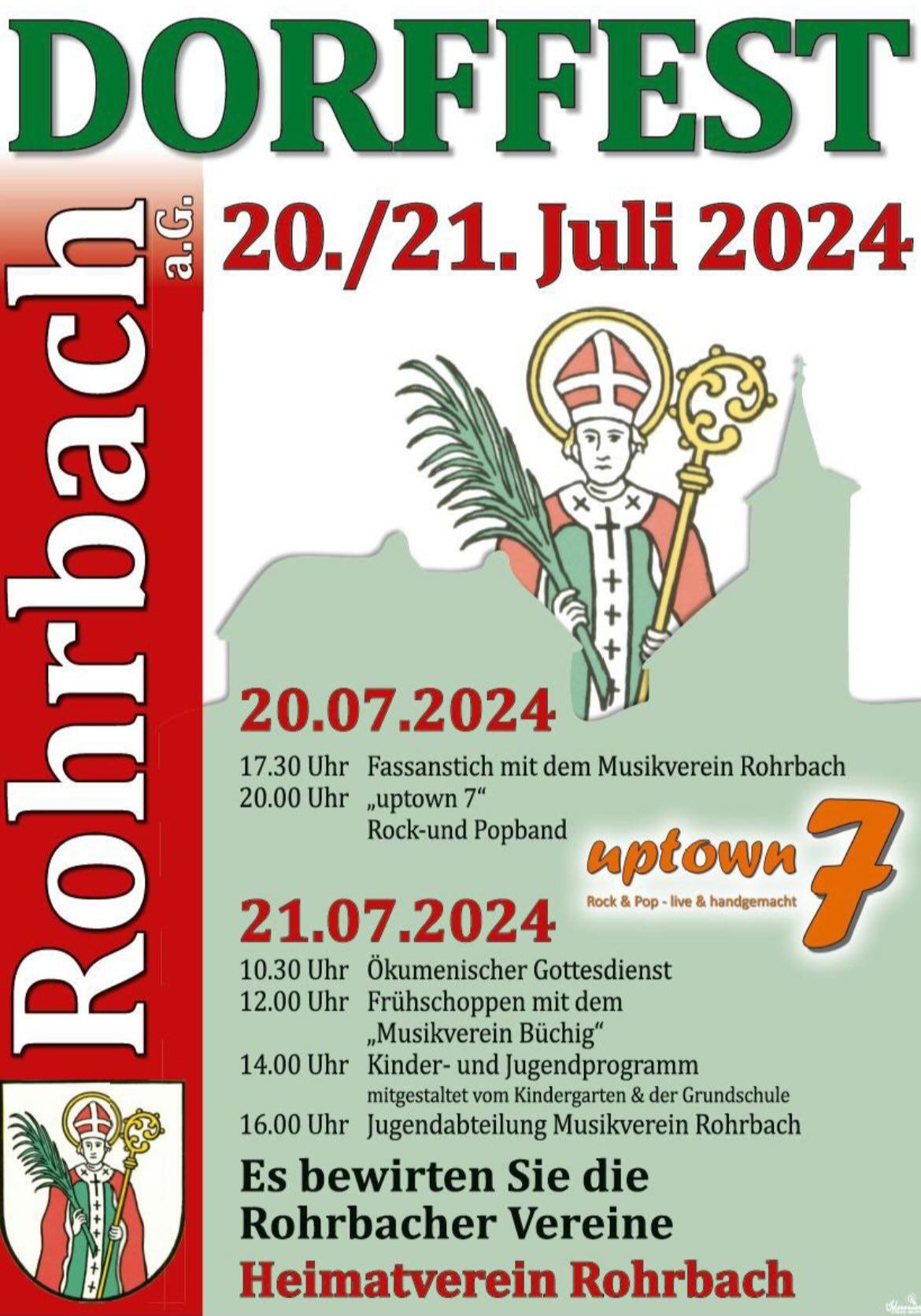 Der FC Badenia Rohrbach freut sich auf das diesjährige Dorffest und hoffentlich viele Gäste aus nah und fern, die am Wochenende den Weg nach Rohrbach finden. Am FC Stand gibt es Wurstsalat mit Brot, Salatteller, Kartoffelpuffer mit Apfelmus oder Quark und am Sonntag zur Mittagszeit bieten wir Biergulasch mit Knödel an. Wir freuen uns auf euren Besuch.